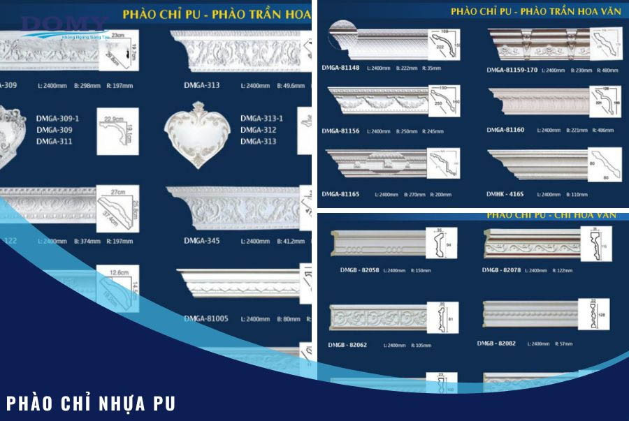 Là một loại vật liệu trang trí, được tạo ra từ chất liệu nhựa cao cấp – Polystyrene. Trong tiếng anh, loại phào chỉ này còn được biết tới với tên gọi Moulding. Kiểu dáng và mẫu mã của phào chỉ PU rất đa dạng. Do đó, loại phào chỉ này có thể sử dụng cho nhiều hạng mục thi công khác nhau.